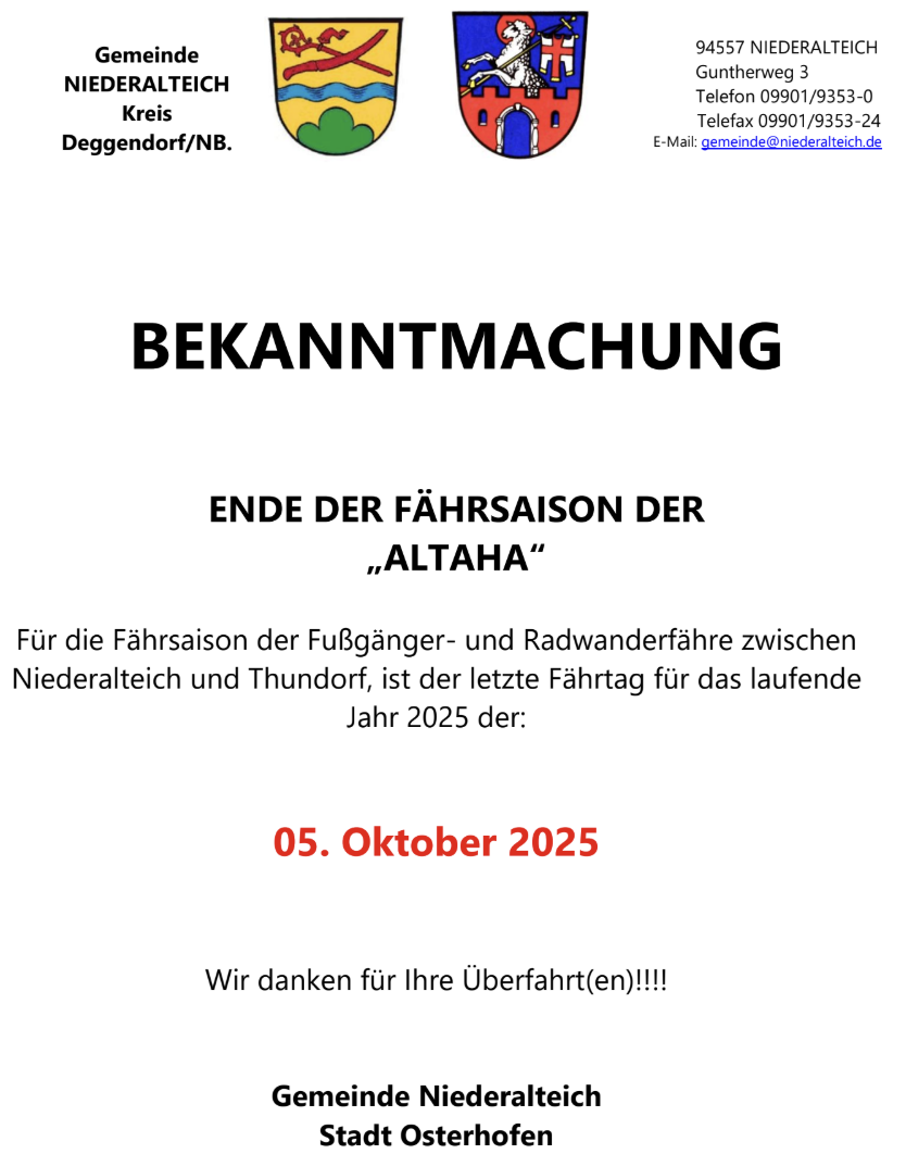 Hier finden Sie allerlei aktuelle Bekanntmachungen und Ereignisse rund um die Stadt Osterhofen. So bleiben Sie immer auf dem neuesten Stand.