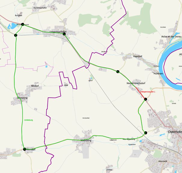 Aus verkehrs- sowie bautechnischen Gründen muss der zur Herstellung anstehende Teilabschnitt 1 wiederum in mehrere Bauabschnitte aufgeteilt werden. So wird die ausführende Firma Berger aus Passau bereits ab 29.09.2025 mit den Bauarbeiten beginnen. Im ersten Bauabschnitt ist ab 29.09.2025 für voraussichtlich 8 Wochen eine Vollsperrung der Bundesstraße 8 erforderlich, welche gemäß dem beiliegenden Umleitungsplan zu umfahren ist. Die Umleitungsstrecke führt vom Niedermünchsdorfer Kreisverkehr über Wisselsing, Manndorf, Ottmaring an die Buhmannkreuzung. Die Vollsperrung war leider nicht vermeidbar, da aufgrund der aufwendigen Entwässerungssituation Abgrabungen von circa 4 bis 5 Metern im Randbereich zur B8-Fahrbahn notwendig sind und es dadurch gilt, ein Abrutschen der Bundesstraße zu verhindern sowie die Sicherheit für die Bauarbeiter zu gewährleisten. Über den weiteren Bauablauf wird die Stadt Osterhofen zur gegebenen Zeit wieder informieren.