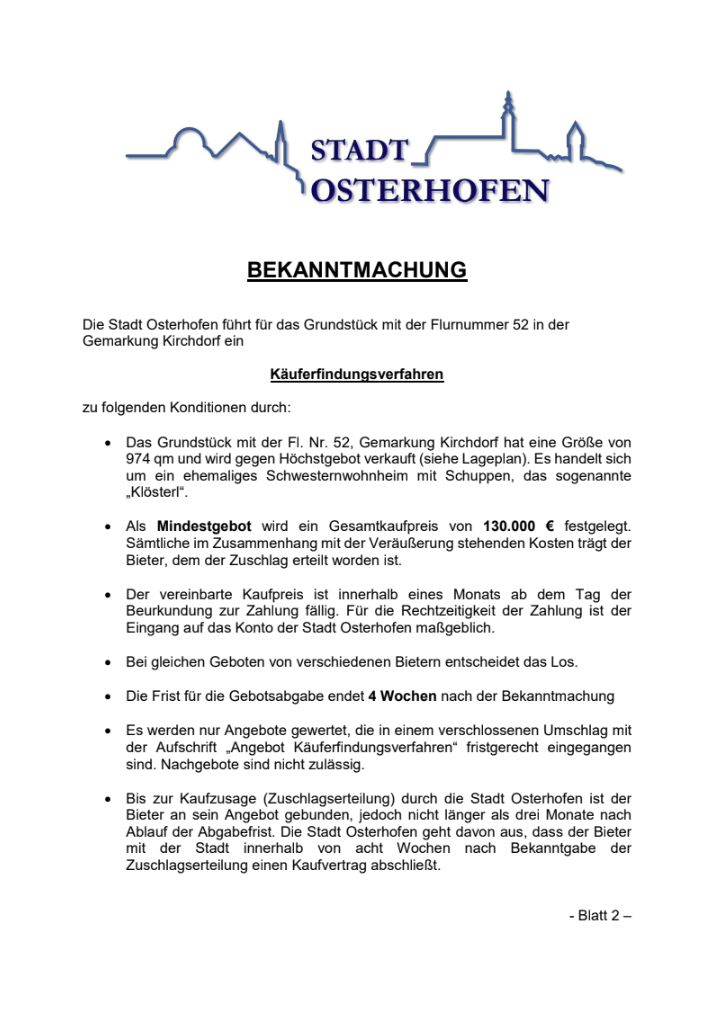 Startseite » Bekanntmachung Käuferfindungsverfahren