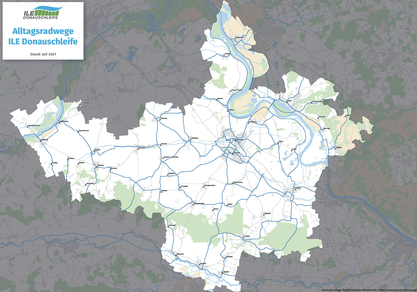 Mit der Erarbeitung eines alltagstauglichen Radwegekonzeptes leisten die Mitgliedskommunen der ILE Donauschleife einen Beitrag zu einem klimaschonenden Mobilitätsangebot. Das Konzept ist Planungs- und Entwicklungsgrundlage für neue Radwegeverbindungen sowie Grundlage zur Beantragung von Fördermitteln. Beschilderung und Ausbau des Netzes sind natürlich eine mehrjährige Aufgabe, die die ILE nun Schritt für Schritt bearbeiten wird.